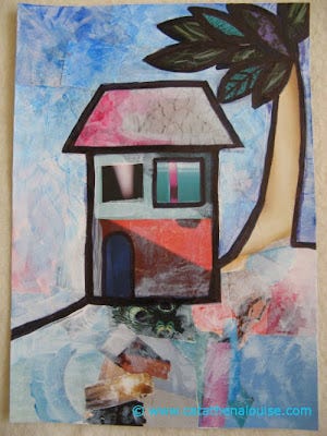 Beach Hut ~ mixed media paper collage and acrylic on paper