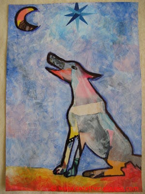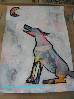 Blue Dog Star ~ mixed media paper collage and acrylic on paper