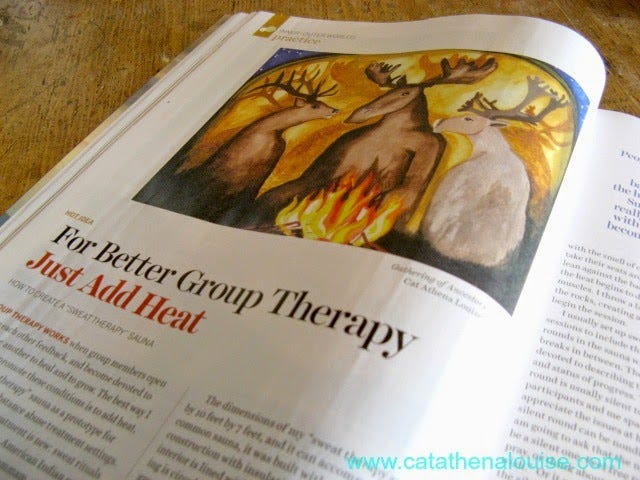 Upon completion of the sadhana I was full of energy, and on a whim decided to quickly check my email before returning back to bed, and there was an email from the art director of Spirituality & Health Magazine, asking if they could license one of my paintings 'Gathering of Ancestors' for use as an editorial illustration for one of their articles on sweat lodges and saunas used in a therapy context. They needed to hear back quite urgently so they could meet a deadline. I replied back there and then.