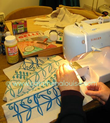 Then I got to work measuring up the fabric, cutting and sewing the full apron shape, the straps and sewing the seams. Firstly the pocket...